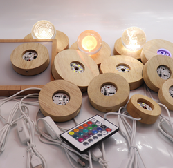 クリスタルオーナメント用バッテリー駆動LEDウッドベースナイトライトRGBLEDナイトランプベースディスプレイ